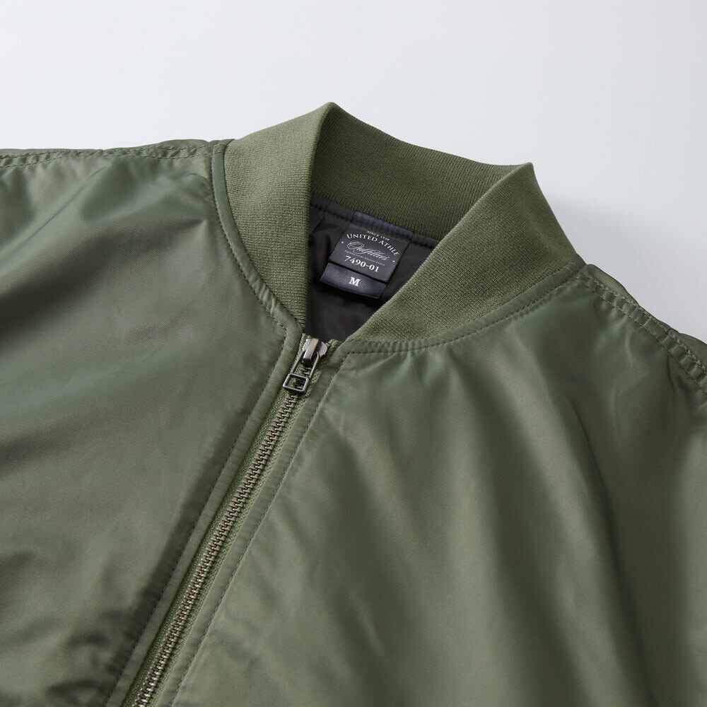 90年代風のサイズ感を落とし込み、ディテールにこだわった本格仕様のMA-1ジャケット。はっ水や防風、中綿入りで保温性もばっちりな機能性抜群の1着です。