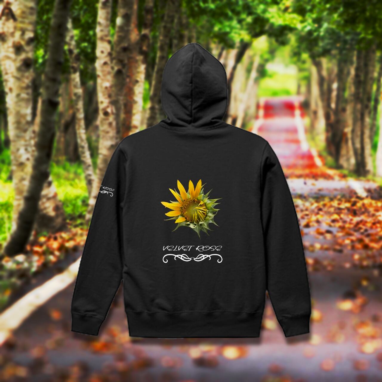 VELVET ROSE スウェットフルジップパーカーひまわりbk