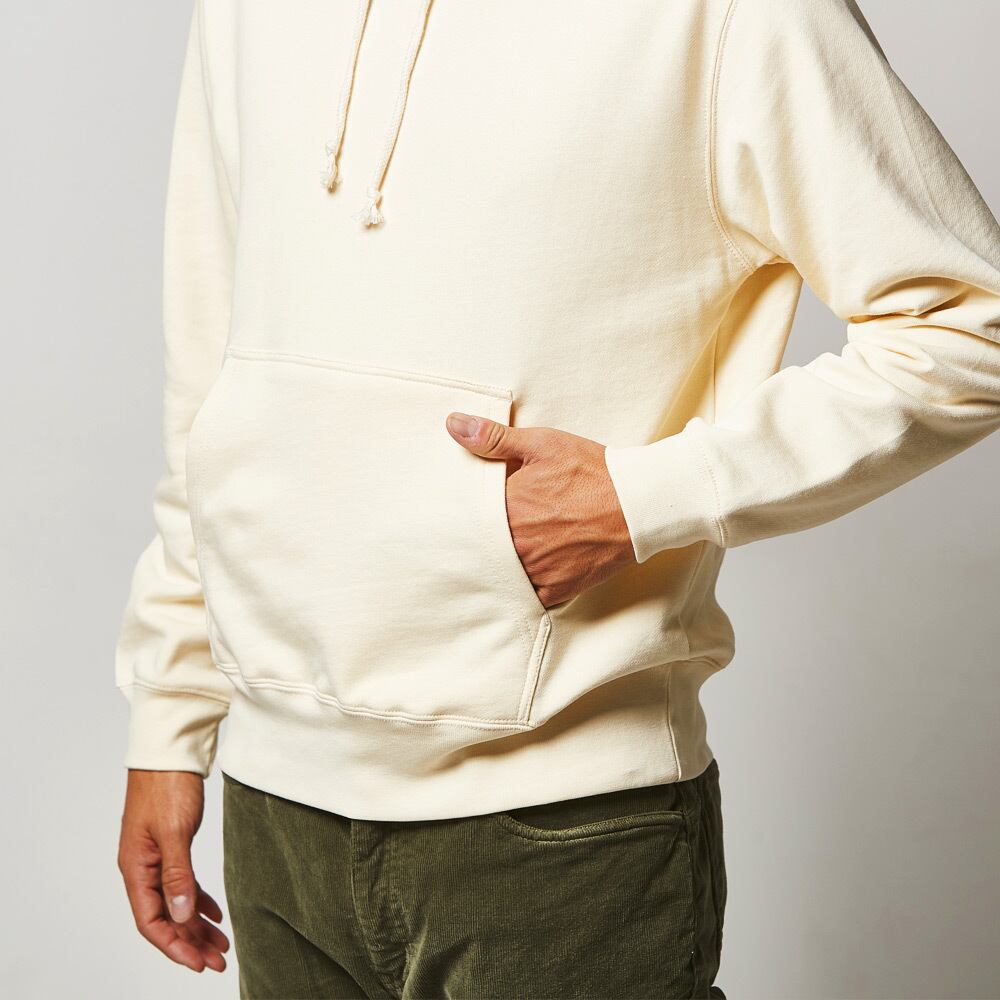 肌触りが良いパイル裏地のスウェット生地を使用したスウェットプルオーバーパーカー。