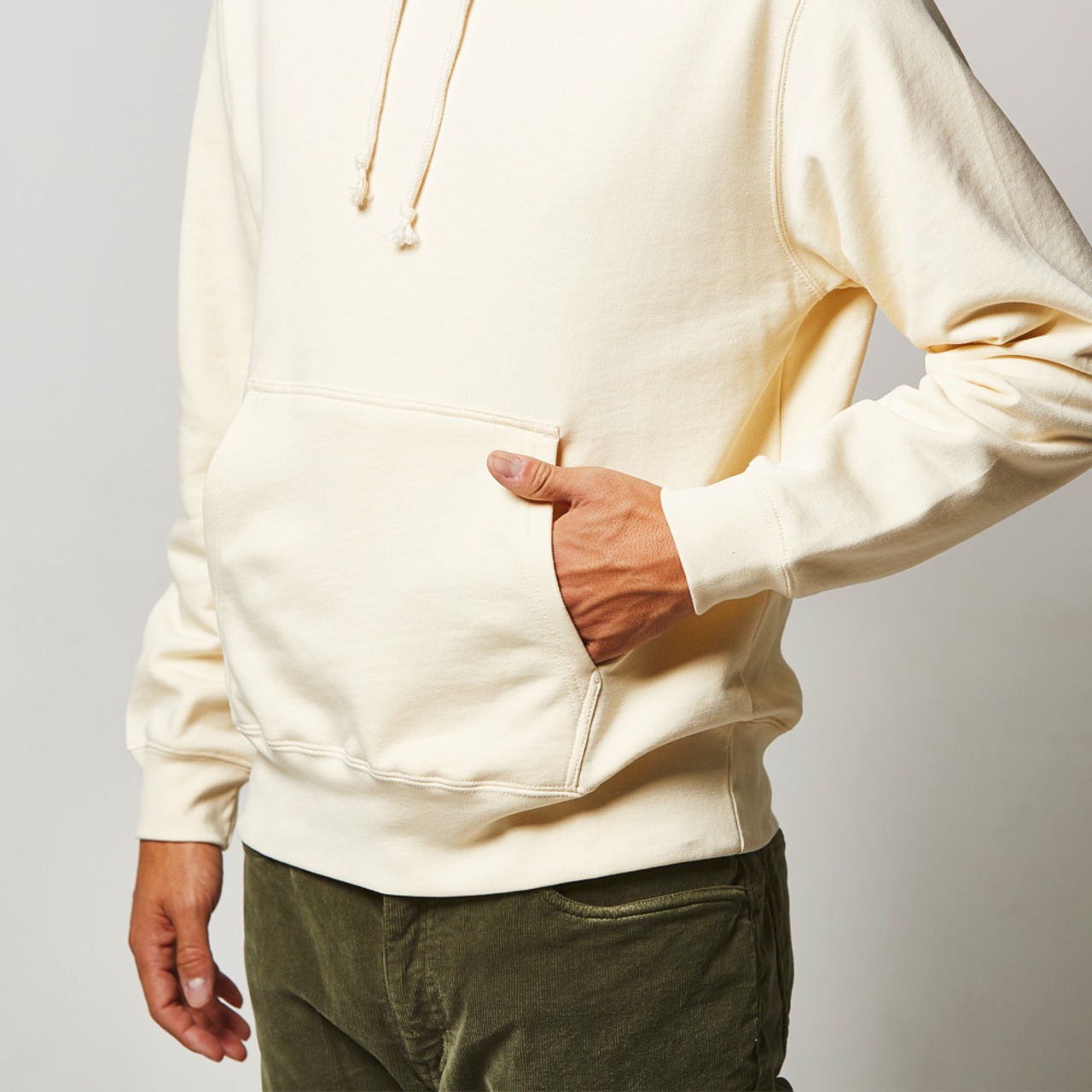 肌触りが良いパイル裏地のスウェット生地を使用したスウェットプルオーバーパーカー。